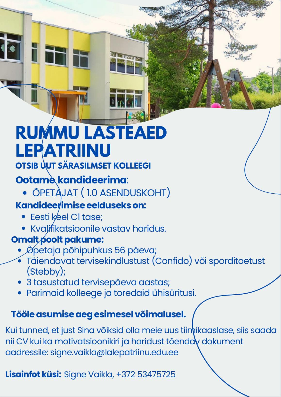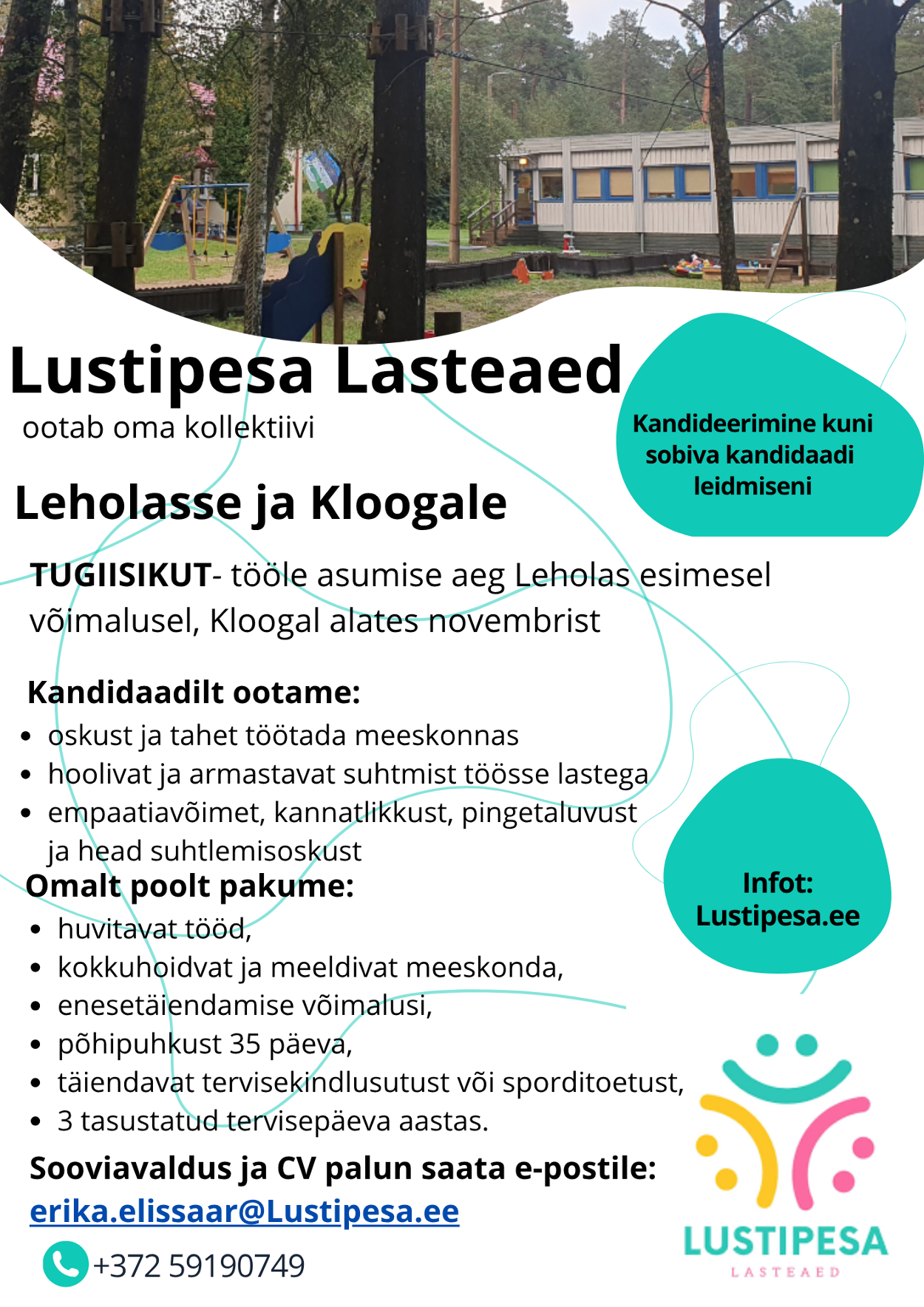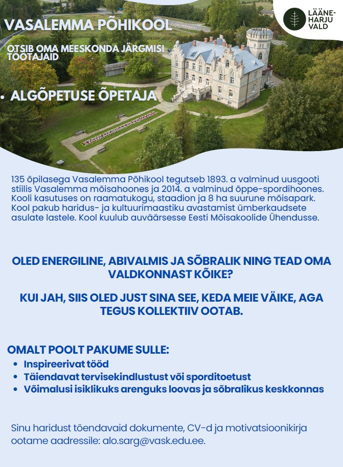 LAULASMAA KOOLI AKTIIVSED TÖÖPAKKUMISED LEIAB