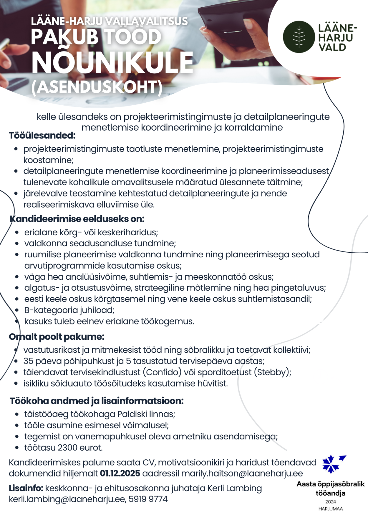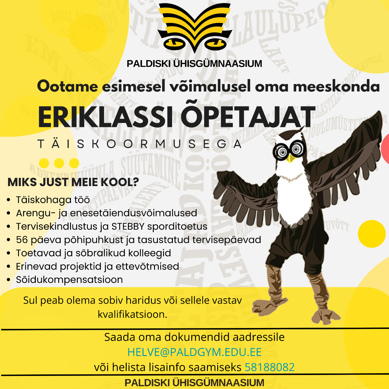 LAULASMAA KOOLI AKTIIVSED TÖÖPAKKUMISED LEIAB